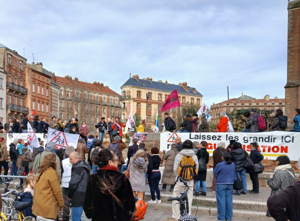 Ce rassemblement fait suite à une série de « cafés citoyens » organisés dans plusieurs écoles de Toulouse avec des collectifs de parents solidaires, d’enseignants et le RESF. L’objectif était de sensibiliser sur la situation des familles sans papiers et de leurs enfants scolarisés, toujours sous la menace de mesures d’obligation de quitter le territoire français (OQTF). Pour cela, la signature d’une pétition réclamant des régularisations était proposée.